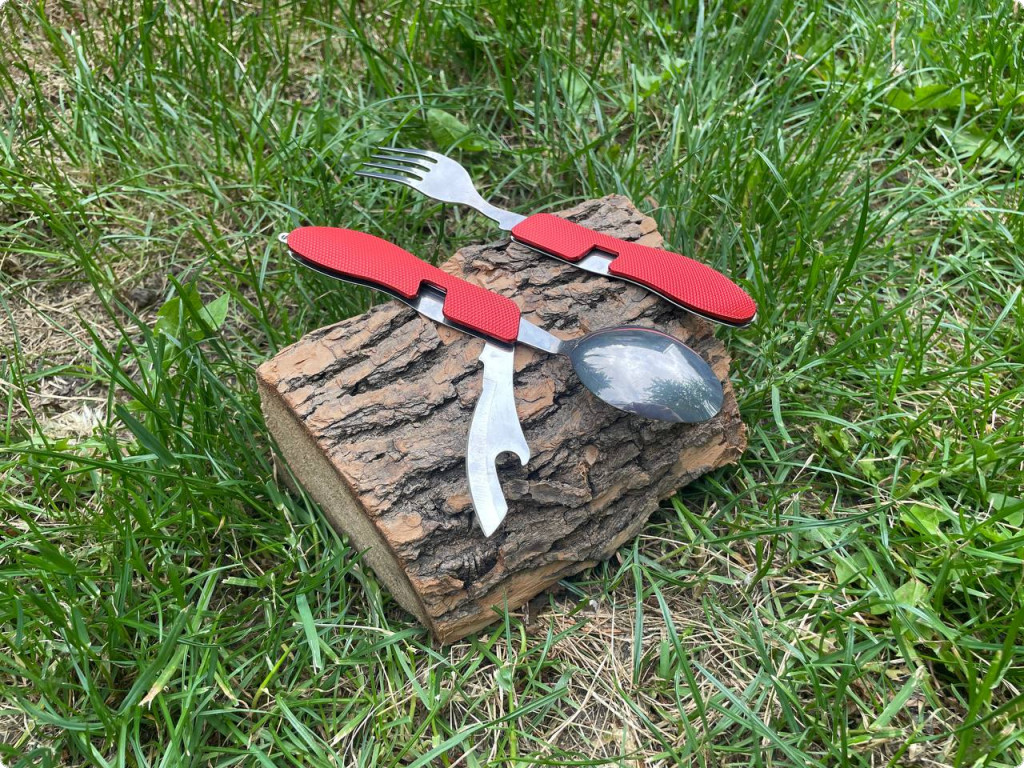 Кишеньковий набір столових приборів, який стане у нагоді в будь-якій ситуації: на роботі, пікніку, полюванні, у поході тощо.