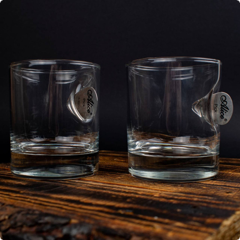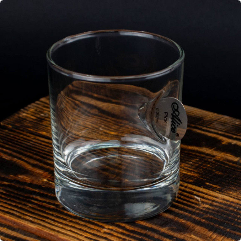 Для вашого друга, якого ви не пам'ятаєте без гітари в руках, гарним презентом стане склянка для віскі з медіатором.