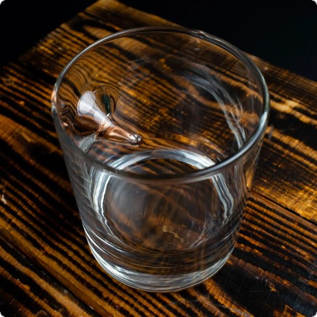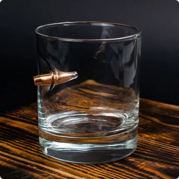 Склянка віскі зі справжньою кулею 7.62 мм неодмінно сподобається чоловікові. Щодо того, кому дарувати цю склянку, слід орієнтуватися на захоплення людини. Це може бути військовий, поліцейський чи друг, який полюбляє полювання чи цікавиться зброєю.