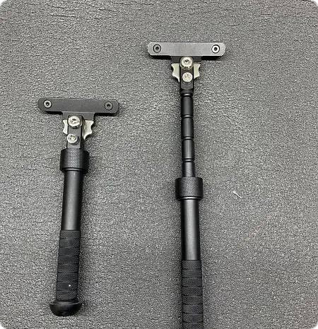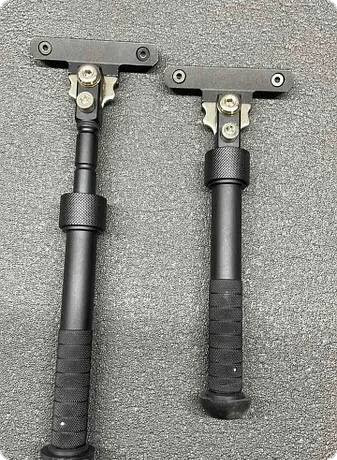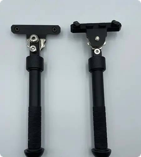 Сошки мають легку конструкцію з авіаційного алюмінію з матовим чорним покриттям і кріпляться до цівки на два пази M-LOK. Кожна в положеннях на 3 і 9 годин. Мають можливість регулювання довжини та фіксації ніжок у 5-ти положеннях. Нековзні прогумовані опори ніжок зручні для розміщення на будь-яких поверхнях. Наконечники ніжок - знімні, сумісні з більшістю відомих фірм, що мають QD-кріплення. Їх можна замінити іншими наконечниками для більш комфортного використання на конкретній місцевості.