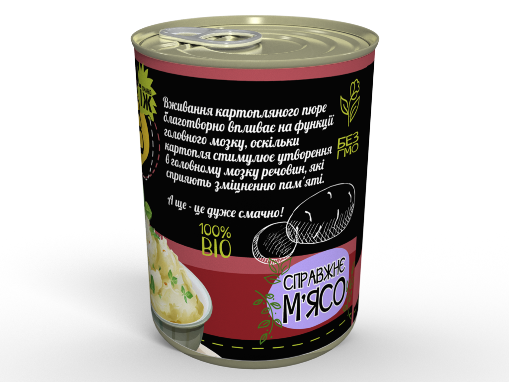Це пюре не містить хімії і всі інгредієнти виключно натуральні. Складається із сублімованих (висушених) продуктів, які повертають свої властивості, якщо додати гарячої води.
