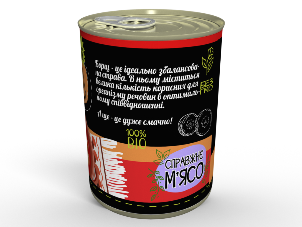 Цей борщ не містить хімії і всі інгредієнти виключно натуральні. Складається із сублімованих (висушених) продуктів, які повертають свої властивості, якщо додати води. За смаком суп трохи відрізняється від домашнього, при цьому не означає, що в гірший бік, просто він трохи інший через метод приготування. А якщо є можливість поварити 15-30 хвилин, то відмінностей від борщу, приготовленого зі свіжих овочів і м'яса, практично не буде.