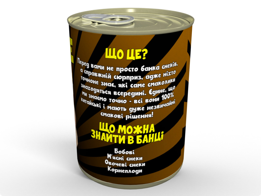 Набридли звичані чипси та горішки? Хочеться чогось новенького? Тоді скоріш замовляй цю баночку! І ній ти знайдеш справжній сюрприз - ніхто не знає, що саме попадеться тобі, але одне ми знаємо точно - всередині буде не один, а декілька пакетиків зі смаколиками з Китаю. Так, вони в заводській упаковці, тобто руки українських кухарів до них не торкалися :) Така баночка з легкістю врізноманітнить будь-який похмурий вечір, адже мало хто куштував справжній Китай.
