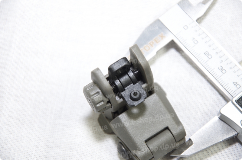 Данный аксессуар предназначен для оружия с базой Weaver. По сути это открытое прицельное приспособление, которое можно сложить в случае ненадобности, либо же открыть за считанные секунды. Для регулировки прицельной планки (круга) необходимо покрутить гайку, на левой стороне корпуса, с ее помощью можно регулировать влево и вправо. А за регулировку по вертикали отвечает мушка.