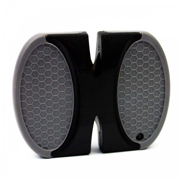 Модель Ace Mini Knife Sharpener лучше всего подходит для рыбаков, охотников и туристов. Это небольшая карманная точилка, которая легко поместится в любой ремнабор. К тому же, ее использование не требует никаких специальных умений и навыков. Ace Mini Knife Sharpener представляет собою небольшой пластиковый корпус с рисунком, который не дает этой точилке скользить в руках, и двумя встроенными точильными поверхностями. Каждая из таких поверхностей состоит из двух перекрещенных под определенным углом стержней. Это означает, что пользователю не нужно самостоятельно устанавливать угол заточки, а инструмент всегда готов к использованию. Одна из точильных поверхностей сделана из карбида и предназначается для начальной грубой заточки. Вторая же выполнена из керамики и позволяет выполнить более тонкую основную заточку. На черном пластике корпуса имеются соответствующие надписи, указывающие на то, какой из материалов перед вами, так что разобраться с этим не составит труда.
