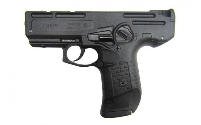 Травматический пистолет Смерч 9 мм Р.А. Смерч представляет собой огнестрельное оружие ограниченного поражения. Пистолет Смерч предназначен для самозащиты и охраны. Особенности: - высокое останавливающее действие пули, удобный угол наклона рукоятки, мягкий спуск, длинная прицельная линия, большая емкость магазина, надежный предохранитель; - стрельба ведется патронами калибра 9 мм, которые в количестве 10 штук размещаются в отъемном двухрядном магазине; - прицельная дальность стрельбы составляет 10 метров; - при габаритных размерах 190х33х145 мм вес пистолета Смерч 9 мм без учета массы патронов составляет 800 гр; - рамка пистолета, изготовленная из полимера, позволяет значительно снизить вес пистолета; - ударно-спусковой механизм пистолета двойного действия; - работа автоматики строится на принципе отдачи свободного затвора; - безопасность стрельбы обеспечивает флажковый предохранитель, расположенный на левой стороне рукояти; - запирание ствола осуществляется затвором; - возвратная пружина расположена под стволом; - затвор при включенном предохранителе не блокируется, курок подвижный, но взвести его нельзя; - перезарядить оружие взводом затвора можно при включенном и выключенном предохранителе;
