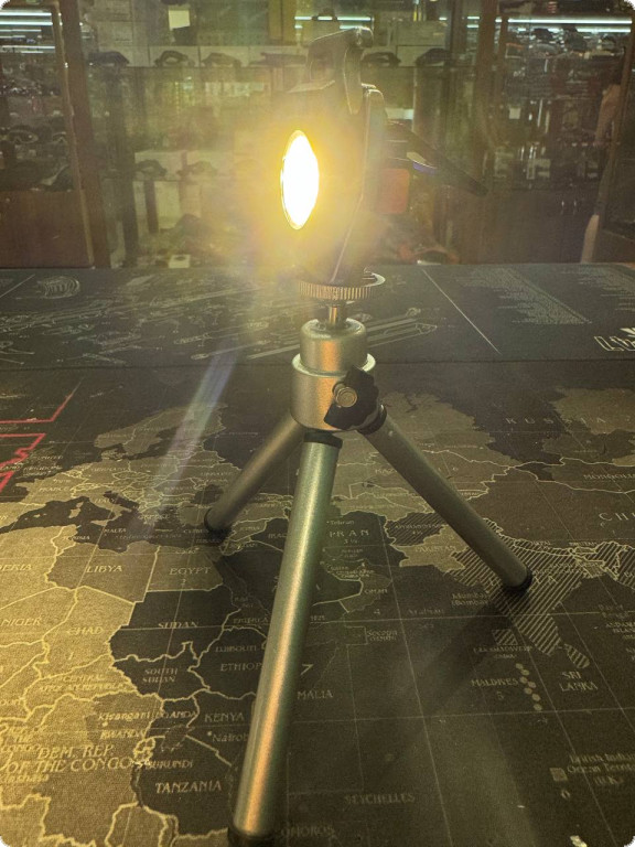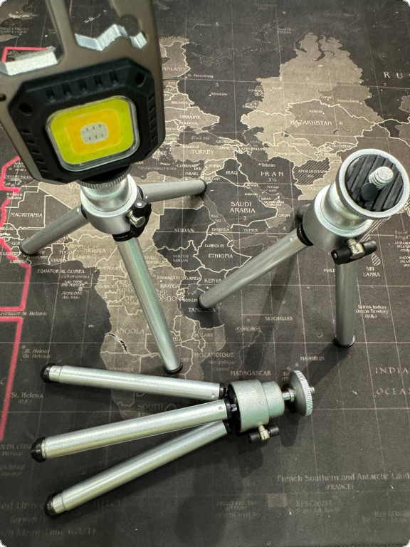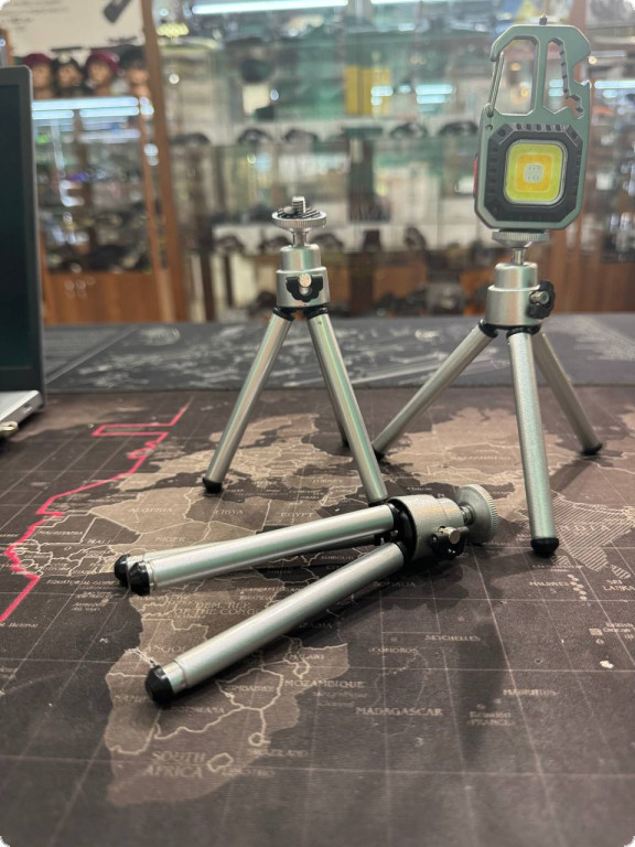 Тринога для лампи, ліхтаря, фото- та відеокамери - це компактне та зручне пристосування, яке легко перетворюється на міні-штатив. Виготовлено в Китаї, підходить для встановлення різних пристроїв, забезпечуючи їх стійкість та зручність використання. Цей штатив має міцну конструкцію з алюмінієвого сплаву та металу, що забезпечує його довговічність. Легко складається та розкладається, що робить його ідеальним вибором для використання в польових умовах, а також вдома чи в студії.