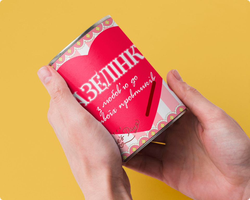 Також ми можемо зробити унікальний дизайн саме для вас. І покласти все, що завгодно в консервну банку.