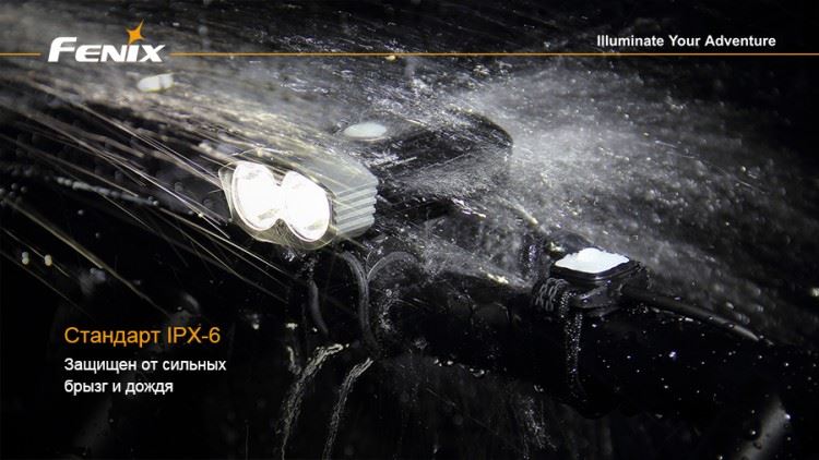 Использовать велофару Fenix BT30R можно в любое время года и в любую погоду, поскольку она защищена от дождя, снега, тумана. Уровень герметичности корпуса этого велосипедного фонаря соответствует стандарту IPX-6.