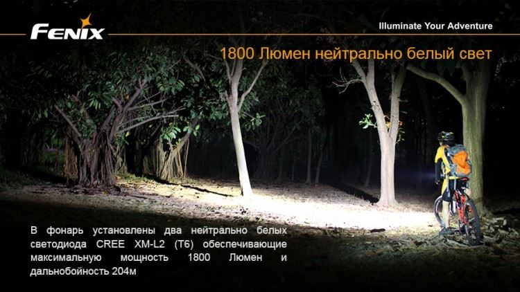 Модель велофары FenixBT30R основана на возможностях сразу двух светодиодов Cree XM-L2(T6), а также ряда инновационных технологий освещения. Диоды Cree XM-L2(T6) дают яркий белый свет нейтрального спектра. Такой свет максимально приближен к естественному и позволяет адекватно воспринимать как расстояние, так и объем различных объектов в темноте. Расчетное время работы каждого из светодиодов составляет 50 000 ч.