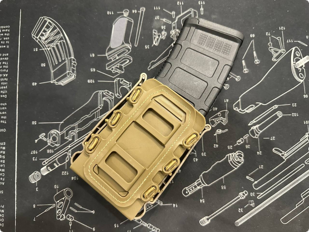 Зручний, якісний пластиковий підсумок, який підходить для магазинів усіх типів АК та AR15. Має спеціальні гумові утяжки та всї необхідні кріплення для надійної фіксації магазина. Кріпиться за допомогою системи Molle (метал).