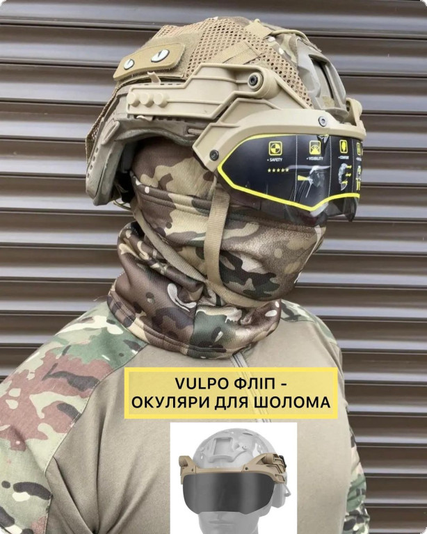 Зручне та корисне допонення до вашого захисного шолому - балістична маска-візор, яка кріпиться на тактичний шолом і захищає очі.
